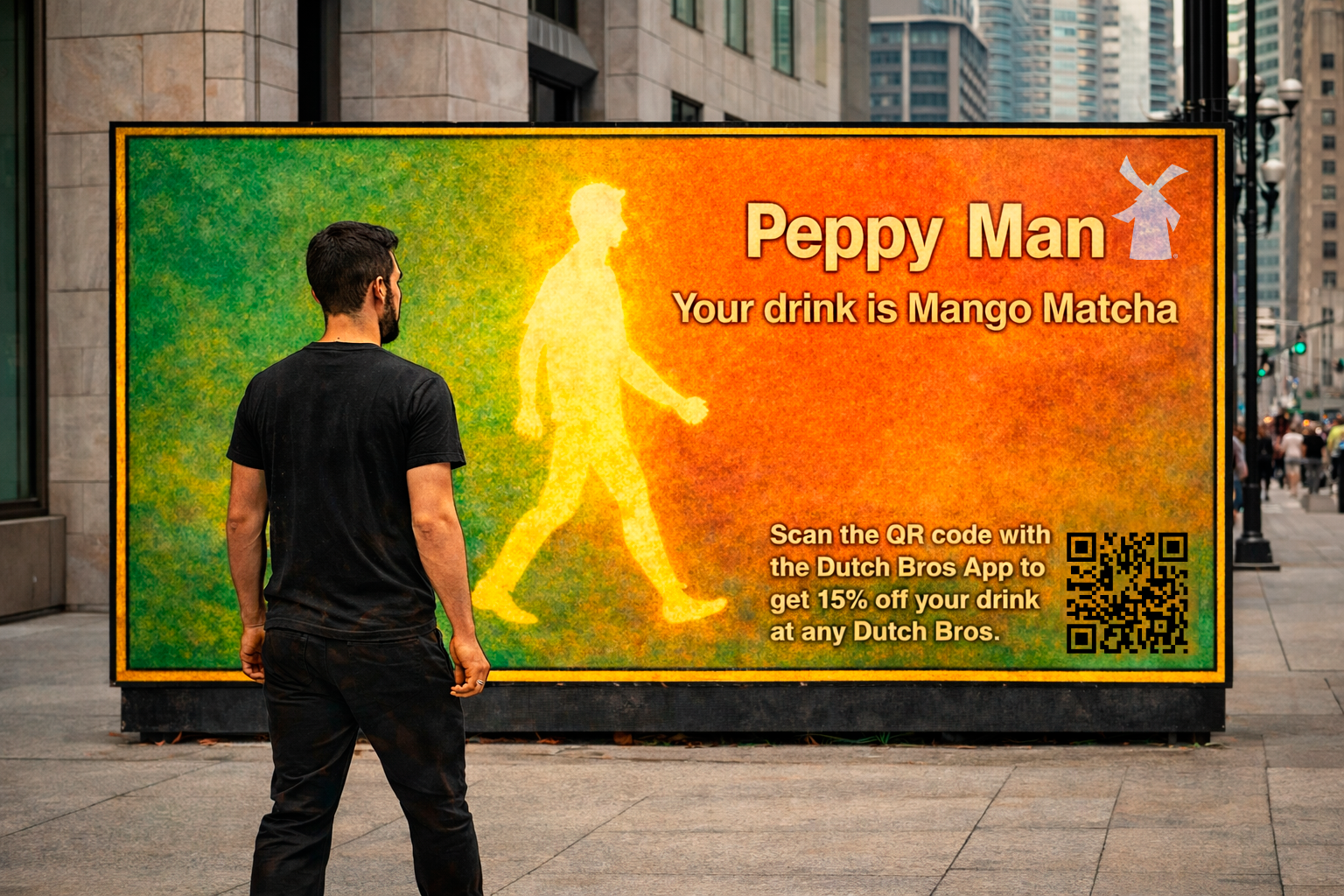 Stand in front of these digital billboards to see what color aura you give off, and what kind of matcha man you are. Each aura color is associated with a Dutch Bros. matcha drink that matches your vibe.